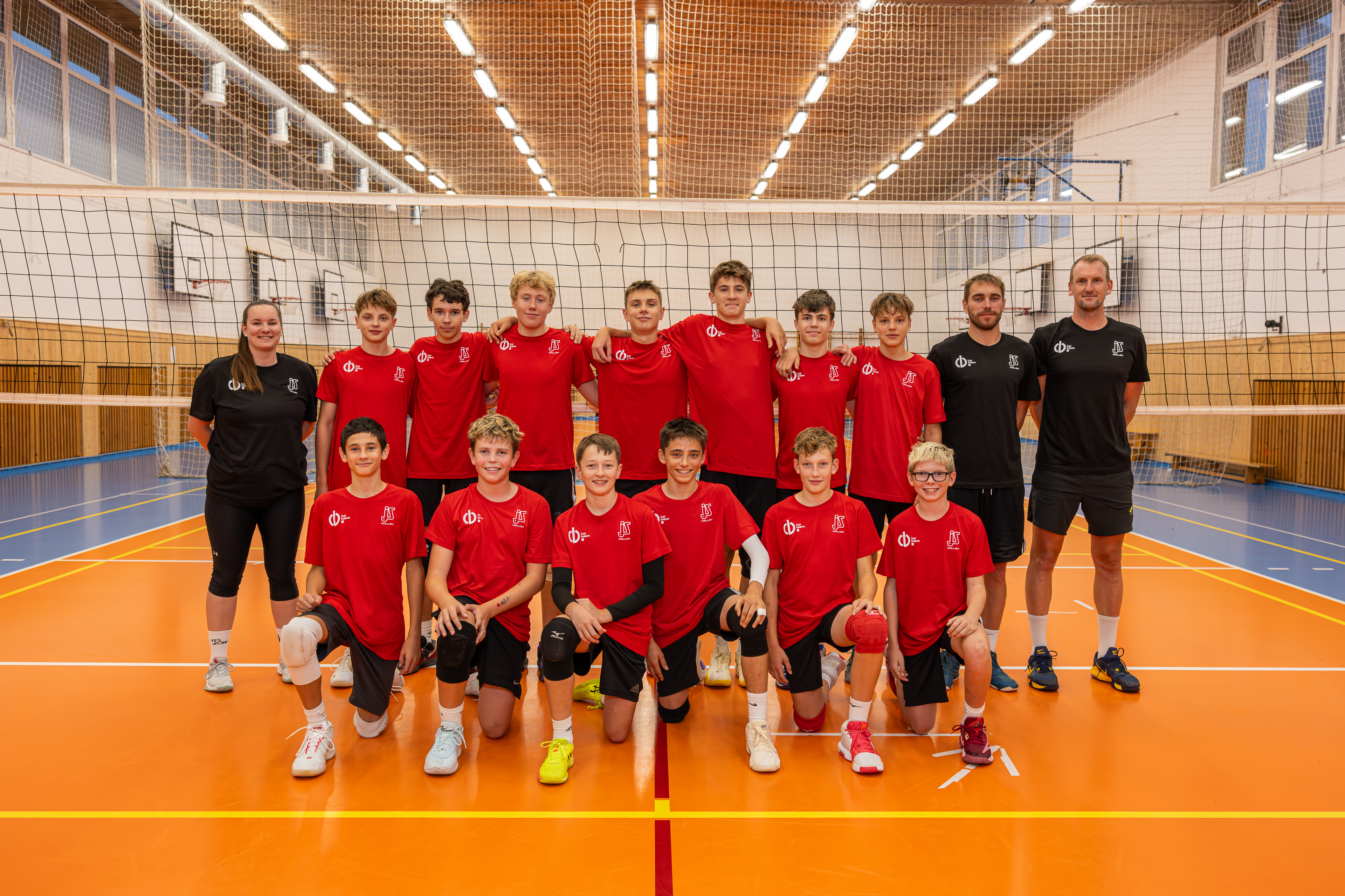 Horní řada zleva: asistentka trenéra Kateřina Kohoutová, Šimon Vačlena, Vojtěch Scheichl, Jakub Zach, Štěpán Uhlíř, Vladimír Vavřín, Oliver Prokeš, Jáchym Novotný, hlavní trenér Jan Vobejda, asistent trenéra Jan Brett