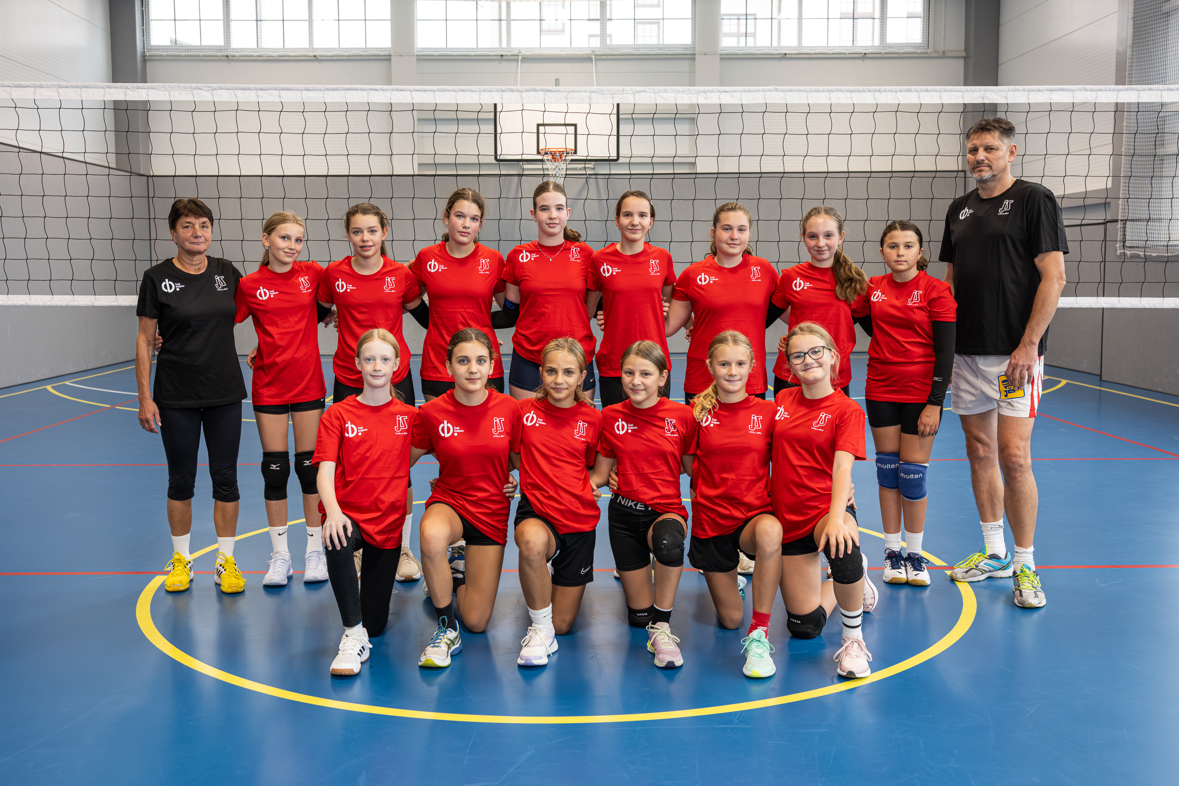 Horní řada zleva: hlavní trenérka Alena Lundáková, Sophia Brodcová, Kateřina Matějková, Kateřina Velická, Beáta Vrbová, Jana Rybecká, Alena Diče, Tereza Valentová, Anna Vančurová, asistent trenérky Petr Zelenka